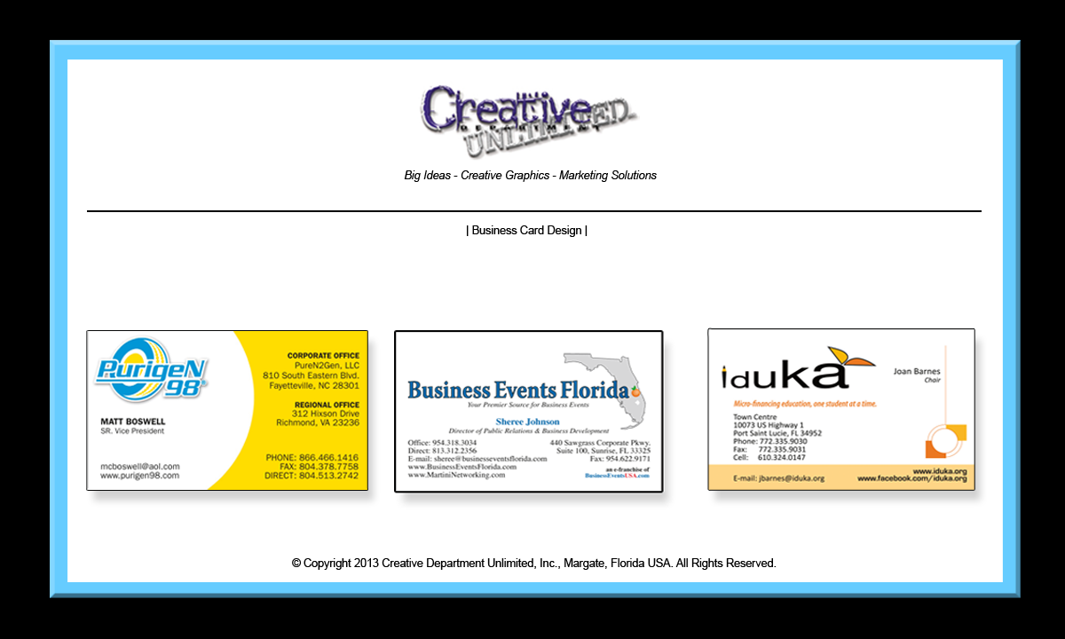 © Copyright 2025 • Creative Department Unlimited Inc. • Margate, Florida • USA